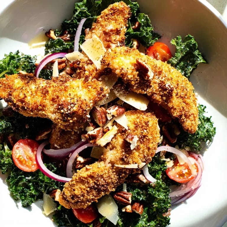 Pin it The oil was a little too hot, and the first piece of chicken hit the pan with a startling crackle that made me jump back. I turned the heat down, laughed at myself, and realized I'd been so focused on getting the breading perfect that I forgot to watch the temperature. That batch turned out fine, just a shade darker than I planned, and honestly, nobody complained. This salad has become my answer to the question of what to make when I want something filling but not heavy, crunchy but not fried-food guilty, and it always disappears faster than I expect.