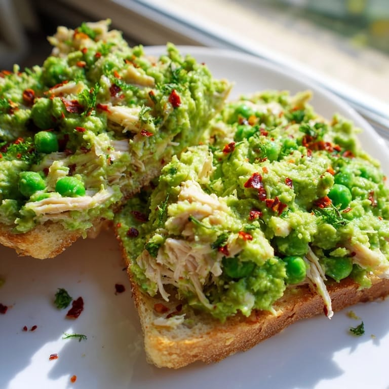 Pin it My roommate Sarah stumbled into our tiny apartment kitchen last spring carrying a bag of frozen peas and leftover rotisserie chicken, muttering something about needing something green and satisfying after a brutal week at work. We smashed those peas together with whatever we had on hand, and the result was so unexpectedly delicious that we made it three times that week. Now it is my go-to whenever I want something that feels fancy but takes zero effort to throw together.