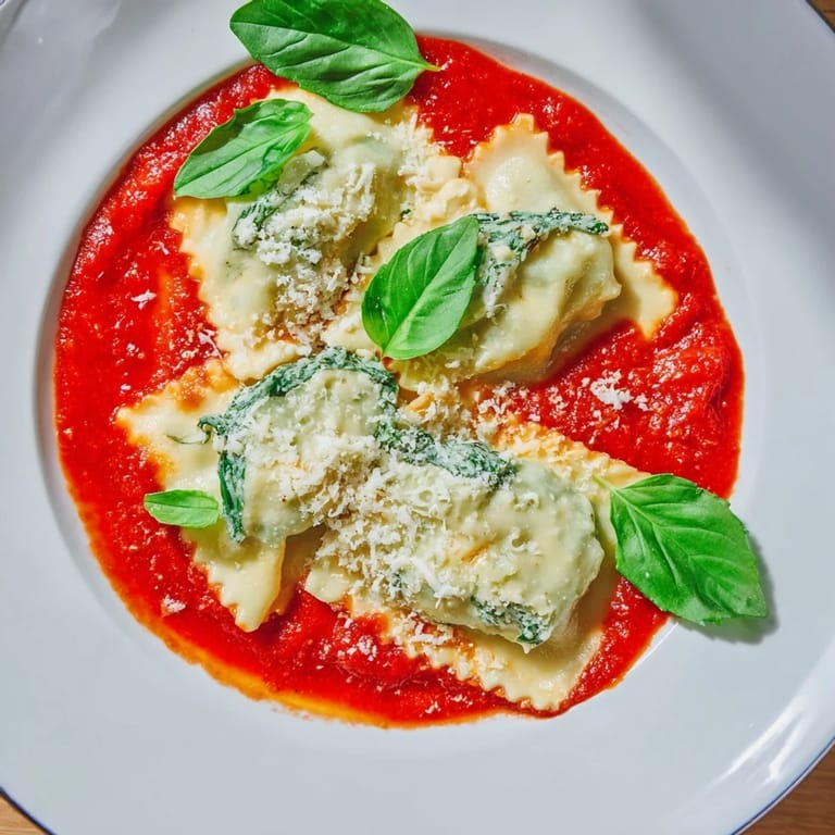 Pin it My kitchen counter was dusted with flour like fresh snow, and I was elbow-deep in pasta dough when my neighbor knocked on the door with a bag of spinach from her garden. She insisted I take it all, and suddenly I had a reason to finally attempt the ravioli I'd been putting off for months. The dough came together easier than I expected, and by the time the first batch floated to the surface of the boiling water, I knew this would become one of those recipes I'd make again and again. There's something deeply satisfying about shaping each little pillow by hand, sealing in that creamy filling like a tiny edible secret.