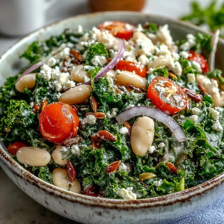 Pin it There's something about kale that used to intimidate me until a friend handed me a bowl of this salad at a picnic, and I realized the secret was in the massage. The leaves had softened into something tender and almost sweet, cradling creamy white beans and bright tomatoes like they'd been made for each other. What started as a skeptical bite turned into me asking for the recipe before dessert was even served. Now I make it constantly, sometimes on quiet weeknights when I want something that feels both effortless and nourishing. It's become my go-to when I need to feel like I'm taking care of myself.