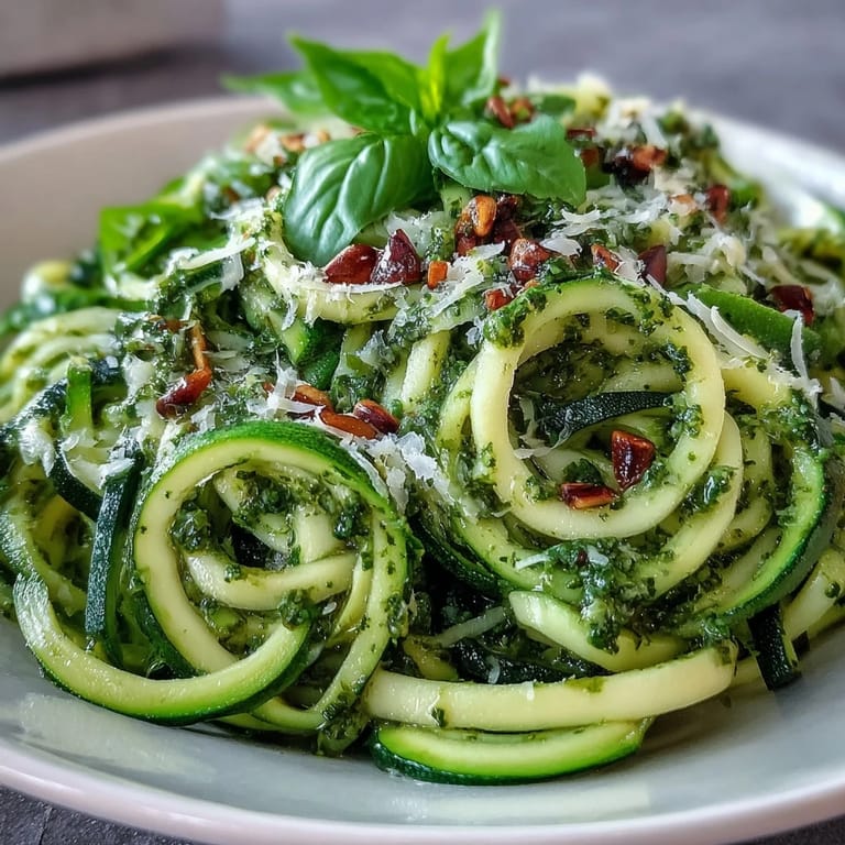 Pin it My spiralizer has become something of a kitchen celebrity, and it all started when my neighbor mentioned she'd given up pasta for good. I watched her face light up when I served her a bowl of zucchini noodles coated in vibrant green pesto, and she actually said, "I didn't know I was missing this." That moment shifted something for me—suddenly this wasn't about restriction or trends, it was about discovering that sometimes the simplest swaps lead to the most genuine meals. The beauty of this dish is that it asks almost nothing of you except fresh basil and a few minutes of your time.